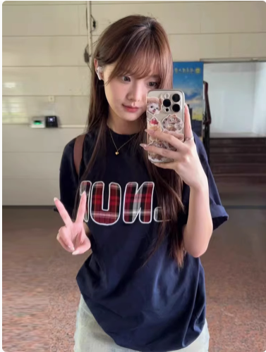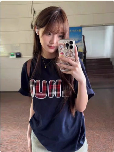 正肩純棉短袖t恤女新款爆款夏季設計感刺繡潮牌寬鬆顯瘦上衣