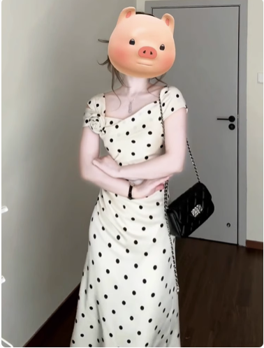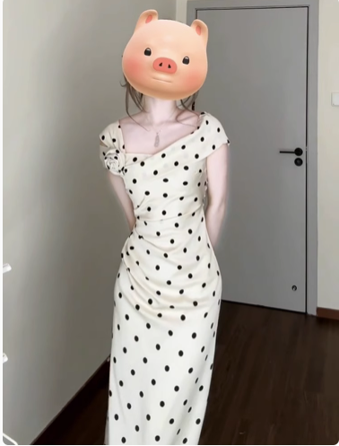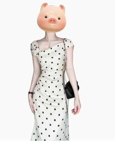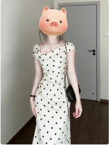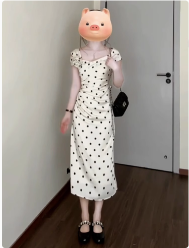 法式氣質白色波點連衣裙子女裝夏季新款立體花朵收腰包臀長裙