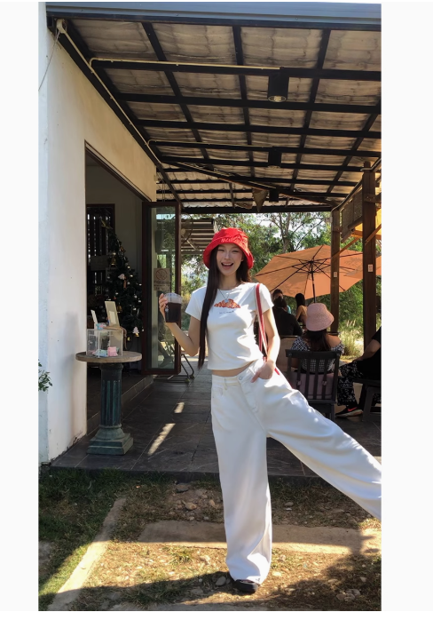 短袖t恤女夏新款爆款白色設計感正肩修身顯瘦短款上衣