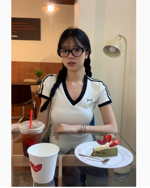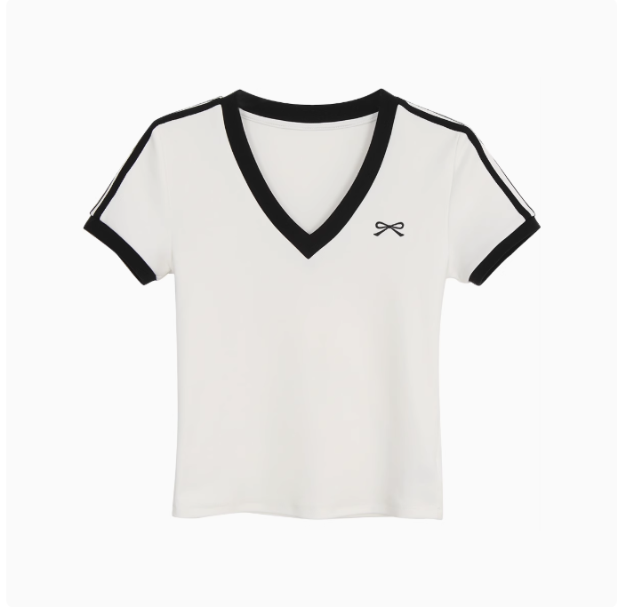 短袖t恤女新款爆款夏季正肩白色修身短款設計感v領上衣