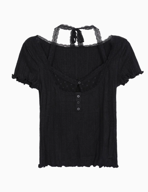 短袖t恤女新款爆款夏正肩修身黑色短款獨特超好看上衣