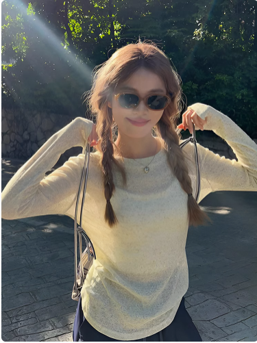 綠色薄款冰絲長袖t恤女早春季年新款設計感打底內搭罩衫上衣