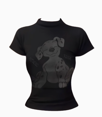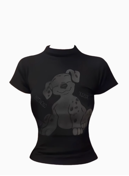 美式復古小狗印花正肩短袖T恤女夏季辣妹機能風小高領y2k短款上衣