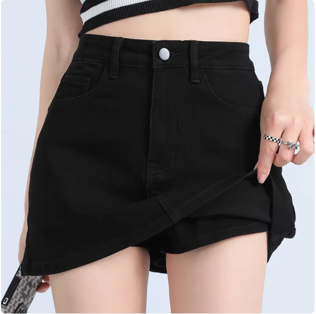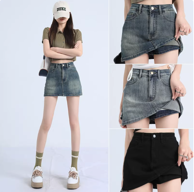 美式新款高腰彈力顯瘦復古牛仔裙a字裙女防走光辣妹包臀牛仔短裙
