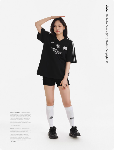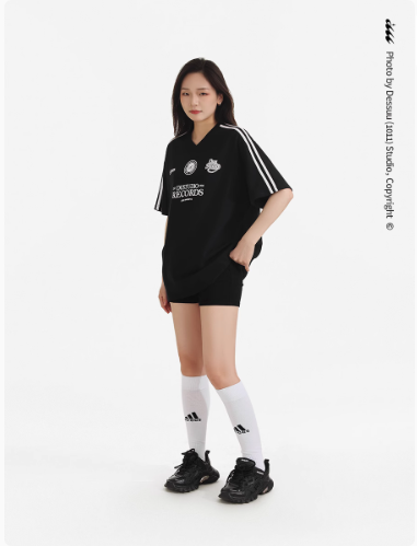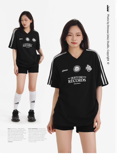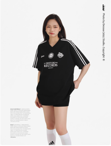 美式V領短袖t恤女顯瘦球衣風上衣Sorona索羅娜涼感防曬260g