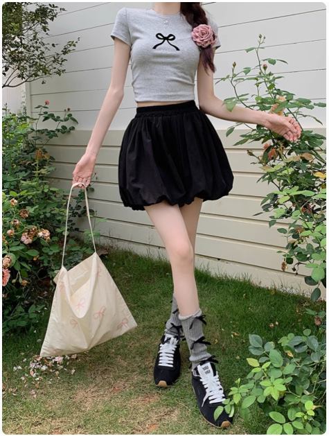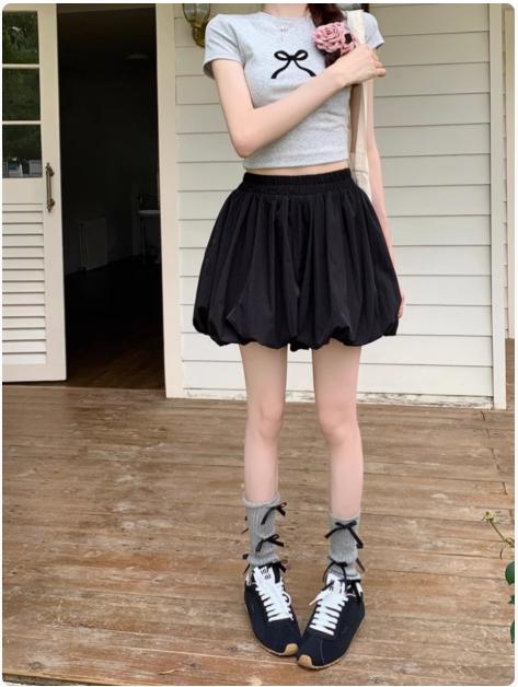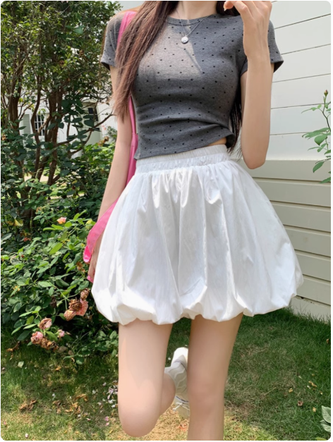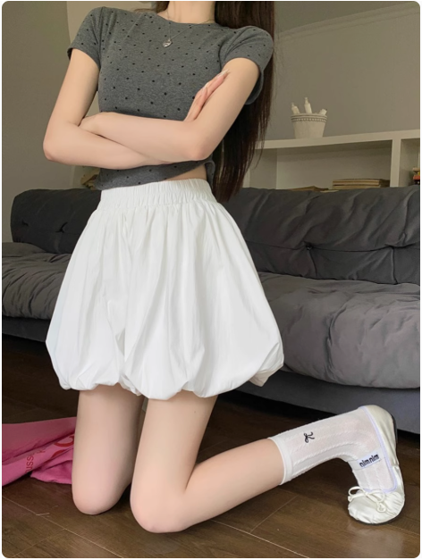 設計感白色短裙高腰顯瘦半身裙女裝夏季小衆花苞裙黑色蓬蓬a字裙