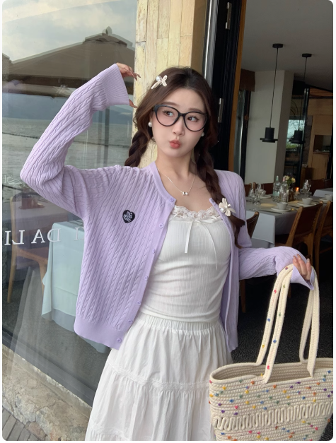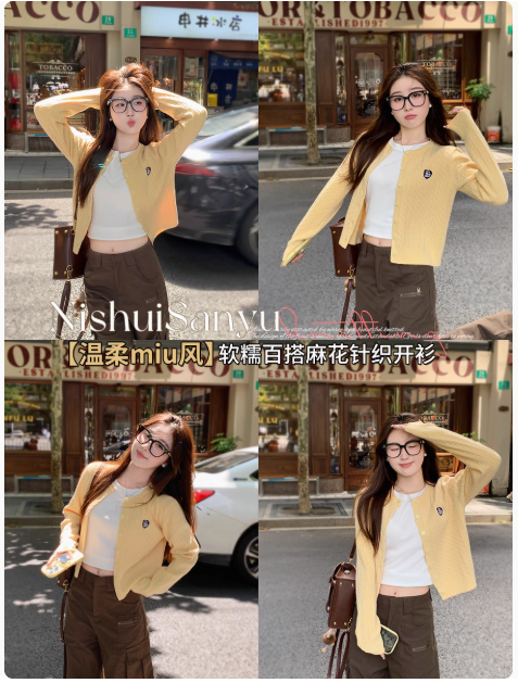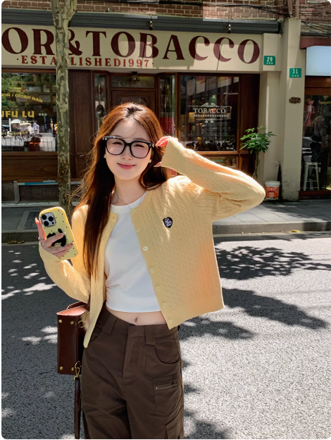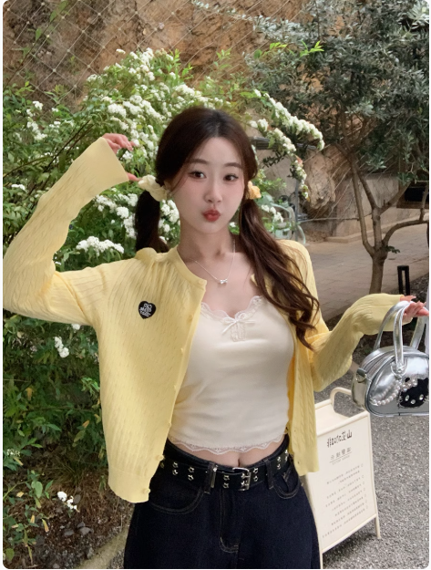 黃色開衫針織外套女冰絲防曬新款春季麻花毛衣外搭上衣