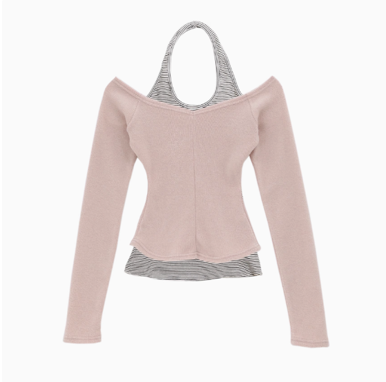 粉色長袖+米黑色吊帶 M