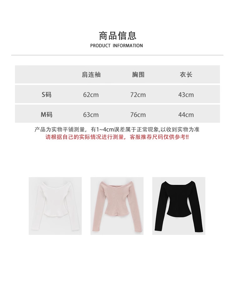 中線拼接顯瘦純色露肩短款長袖高級感修身彈力長袖T恤衫