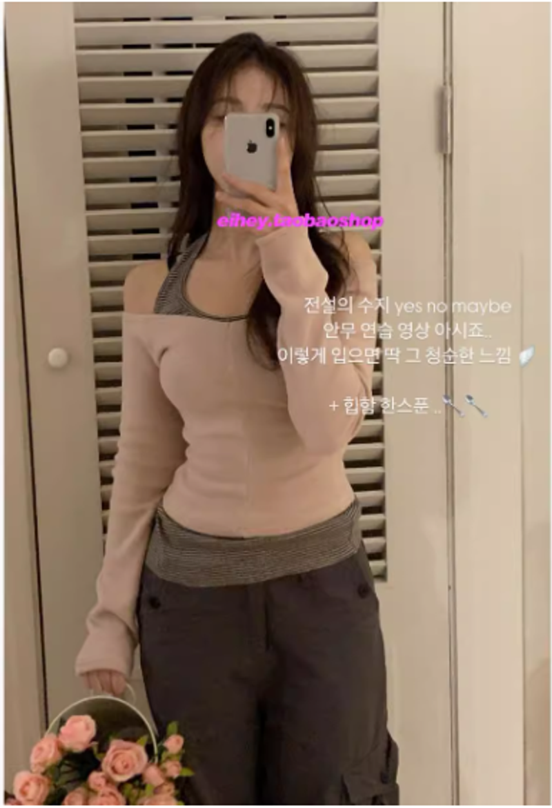 粉色長袖+米黑色吊帶 L