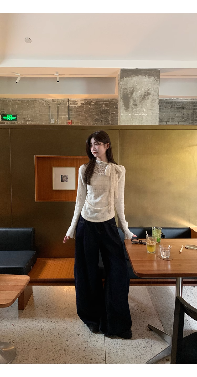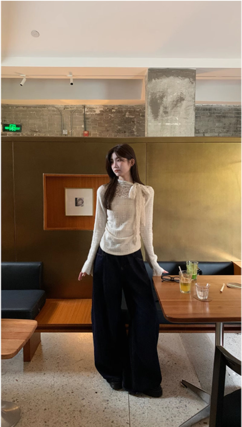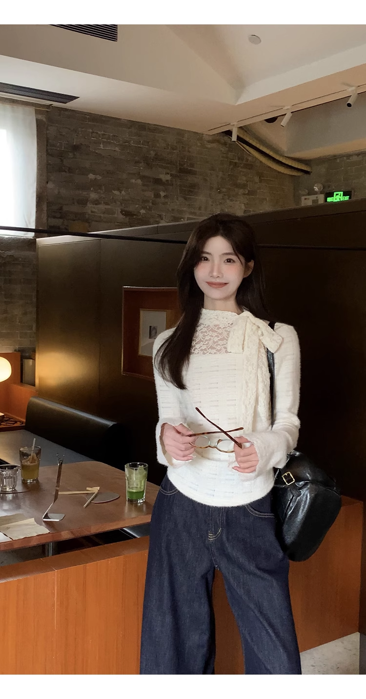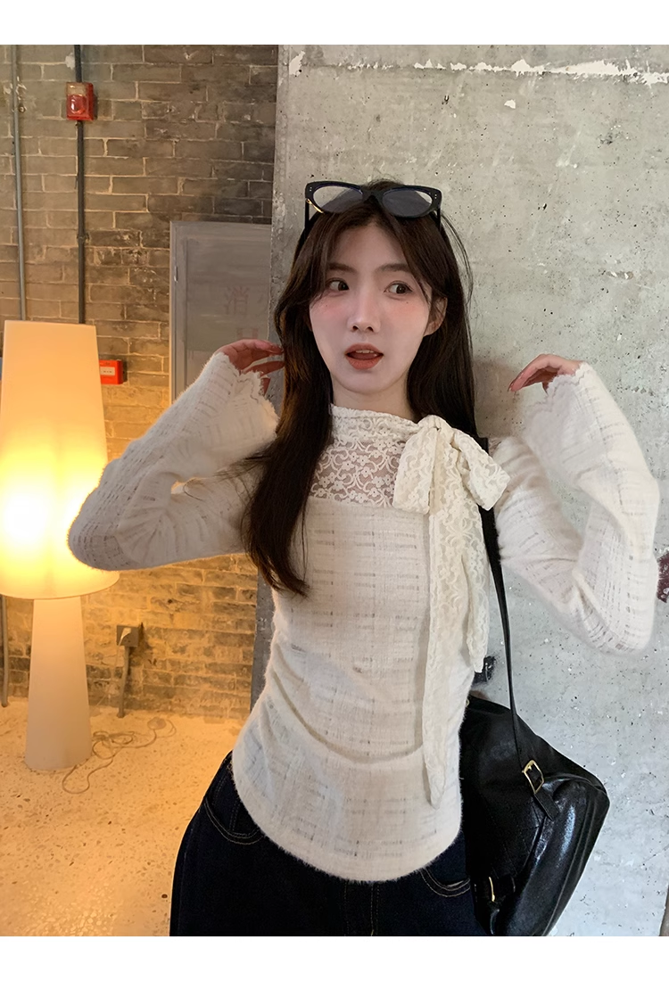 內搭打底衫女春季新款高級感蕾絲修身t恤長袖獨特絕美上衣