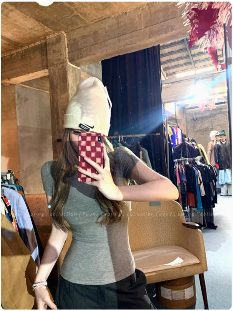 初代陷阱收腰顯瘦正肩短袖T恤女設計感內搭上衣帶胸墊