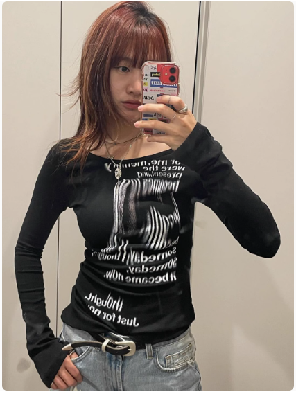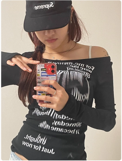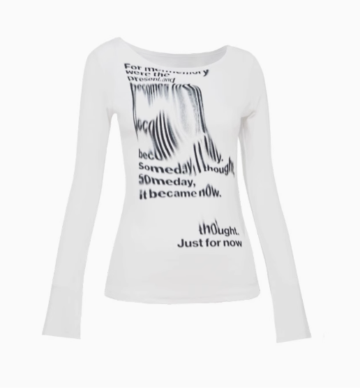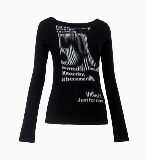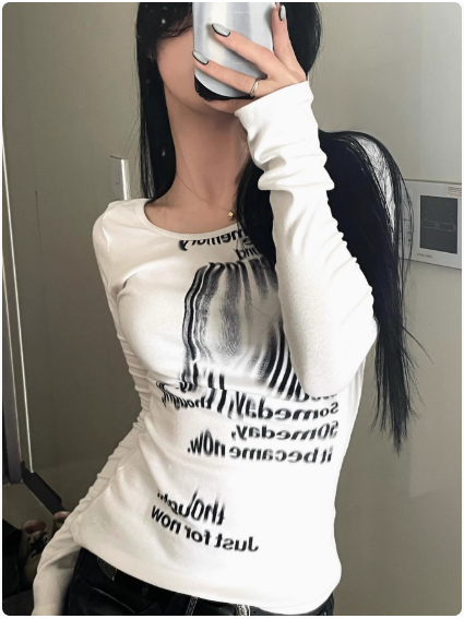 字母暈染印花修身顯瘦辣妹長袖露肩百搭上衣T恤女