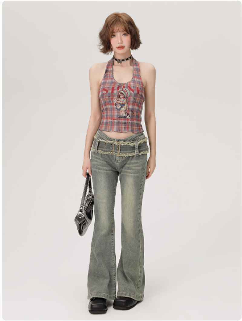 復古格子掛脖吊帶女夏季新款修身甜酷辣妹內搭上衣