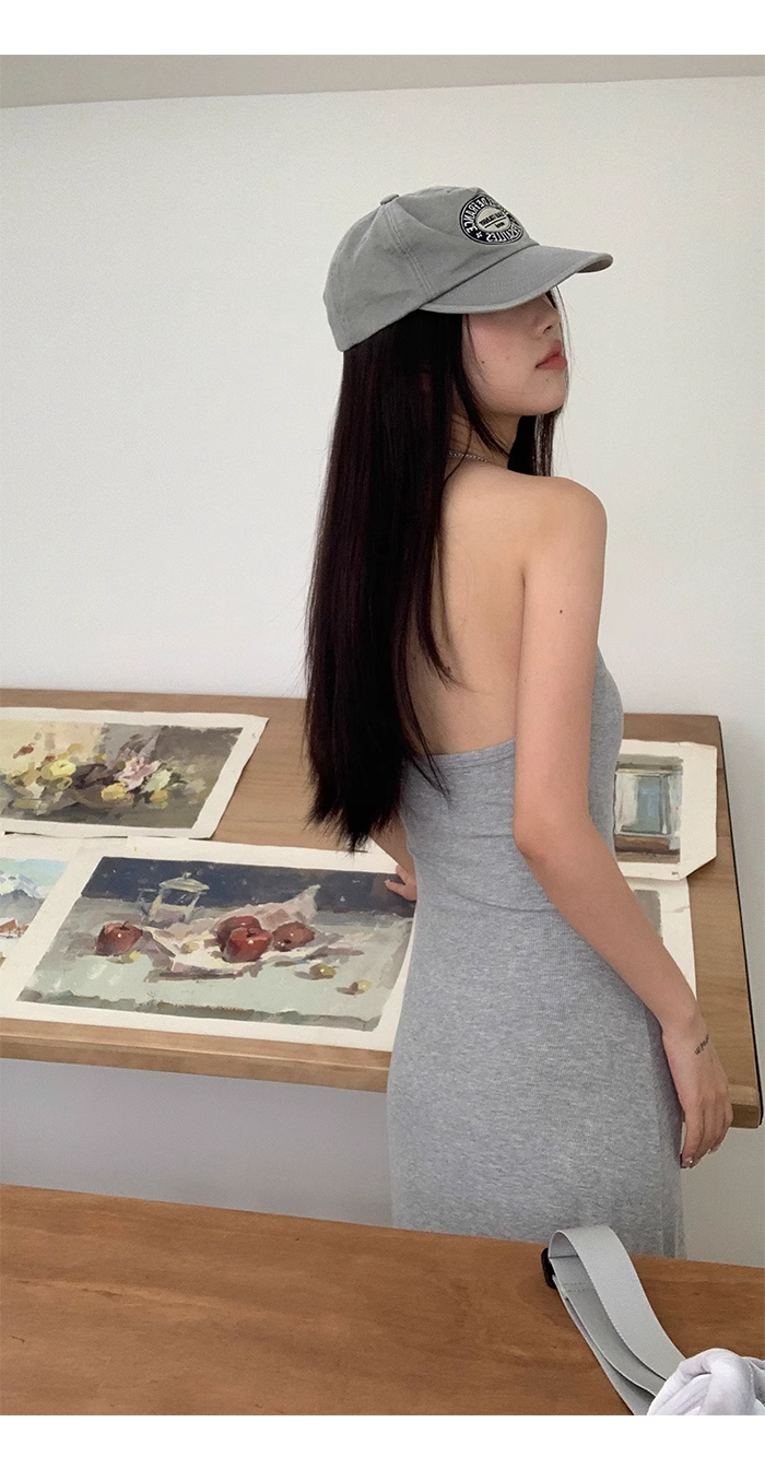 掛脖連衣裙女夏季新款黑色高級垂墜感長裙氣質超火吊帶裙子