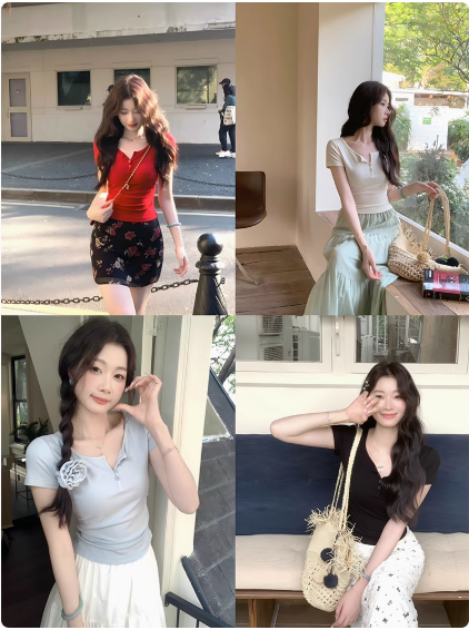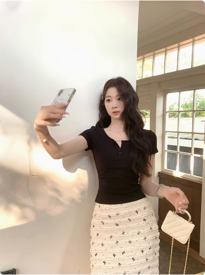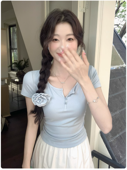 新中式國風韓系純欲氣質針織衫女夏收腰短袖上衣