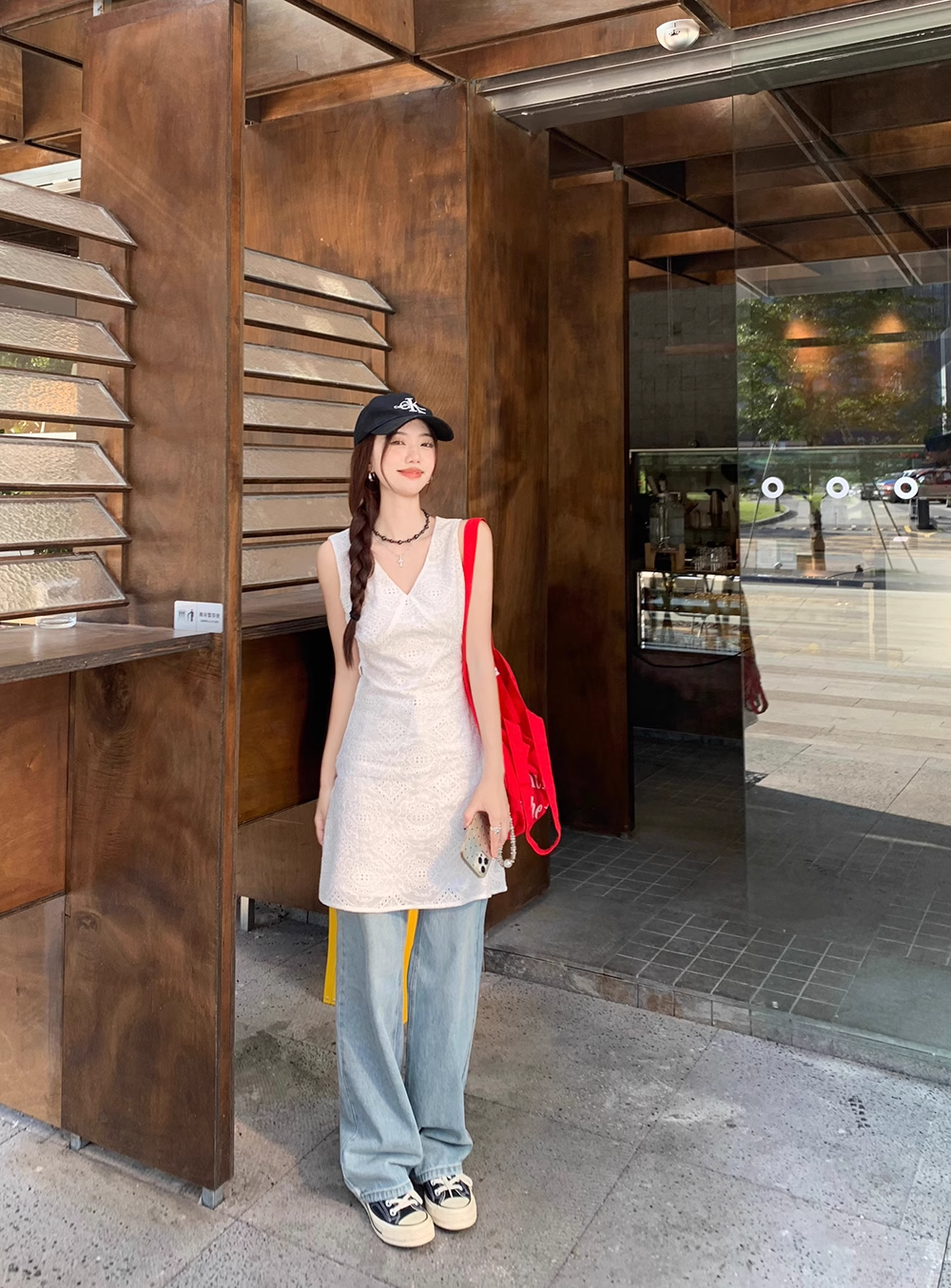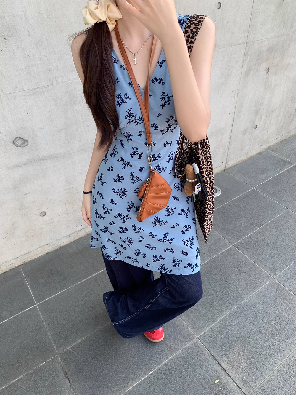 氣質碎花V領背心連衣裙女2025夏季新款韓系收腰顯瘦別緻短裙子潮