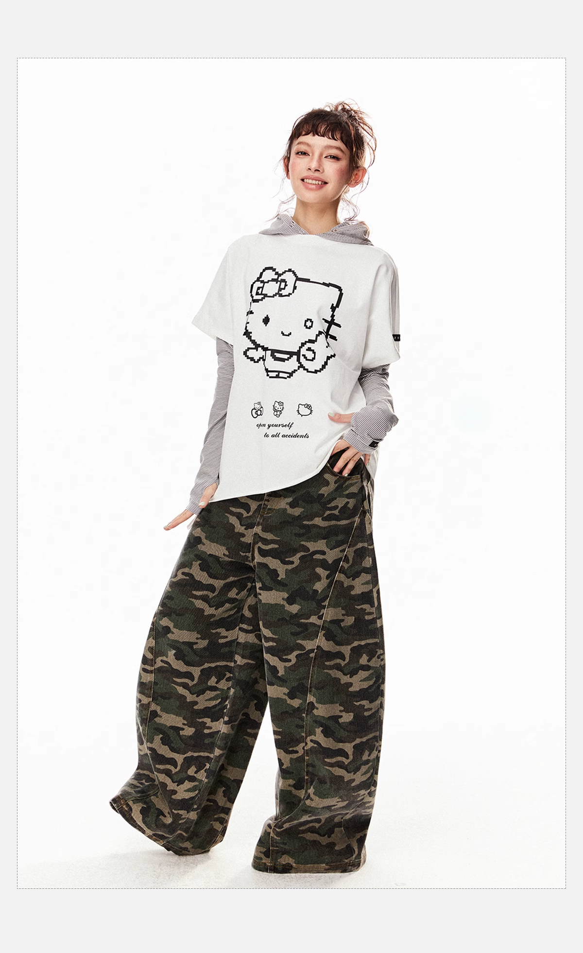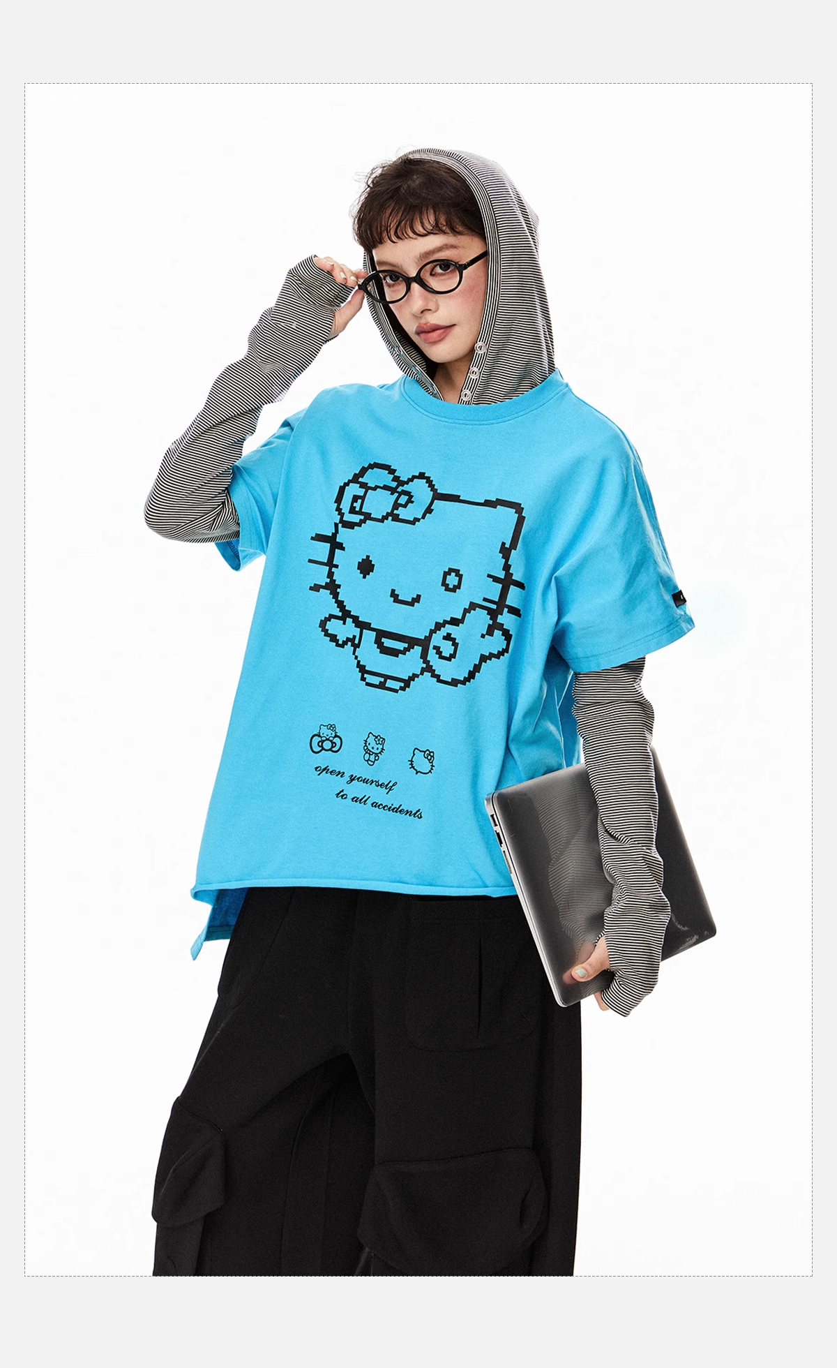 短袖T恤女夏季新款美式印花不規則衣服卡通白色內搭上衣半袖