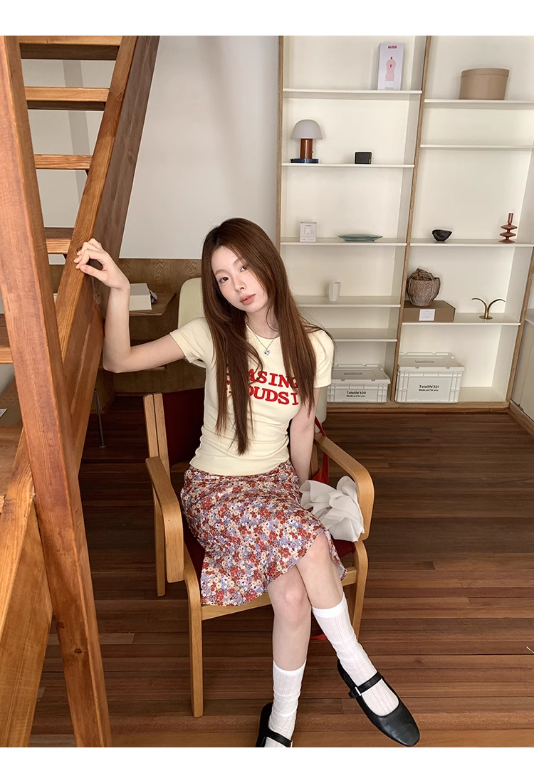 短袖t恤女夏新款爆款正肩chic韩系修身独特超好看上衣