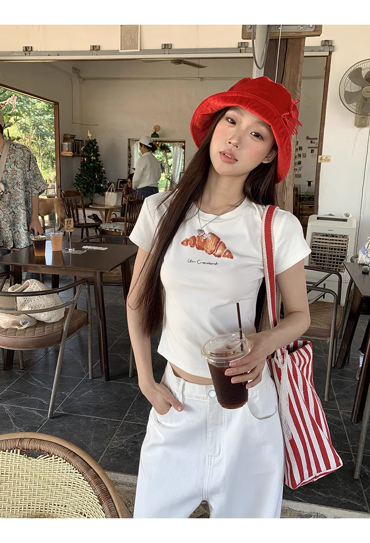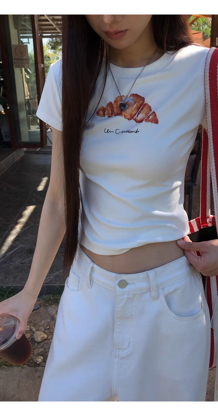 短袖t恤女夏新款爆款白色設計感正肩修身顯瘦短款上衣