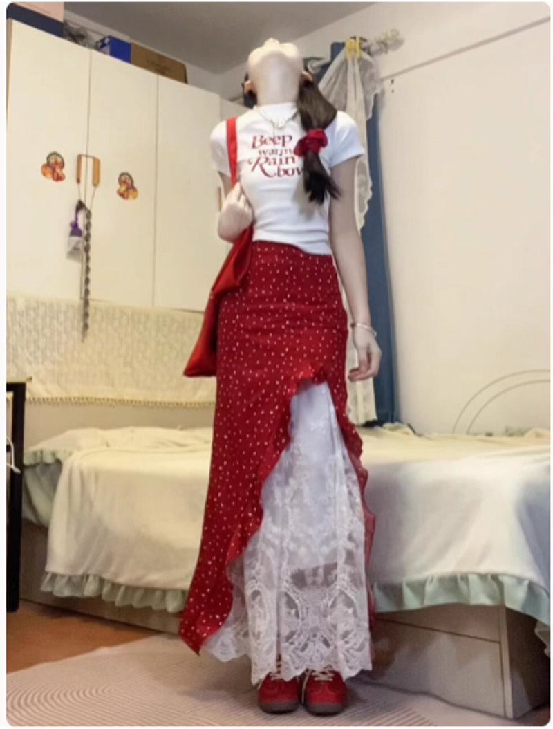 紅色碎花不規則連衣裙子女夏季新款長裙開春氣質穿搭一整套裝