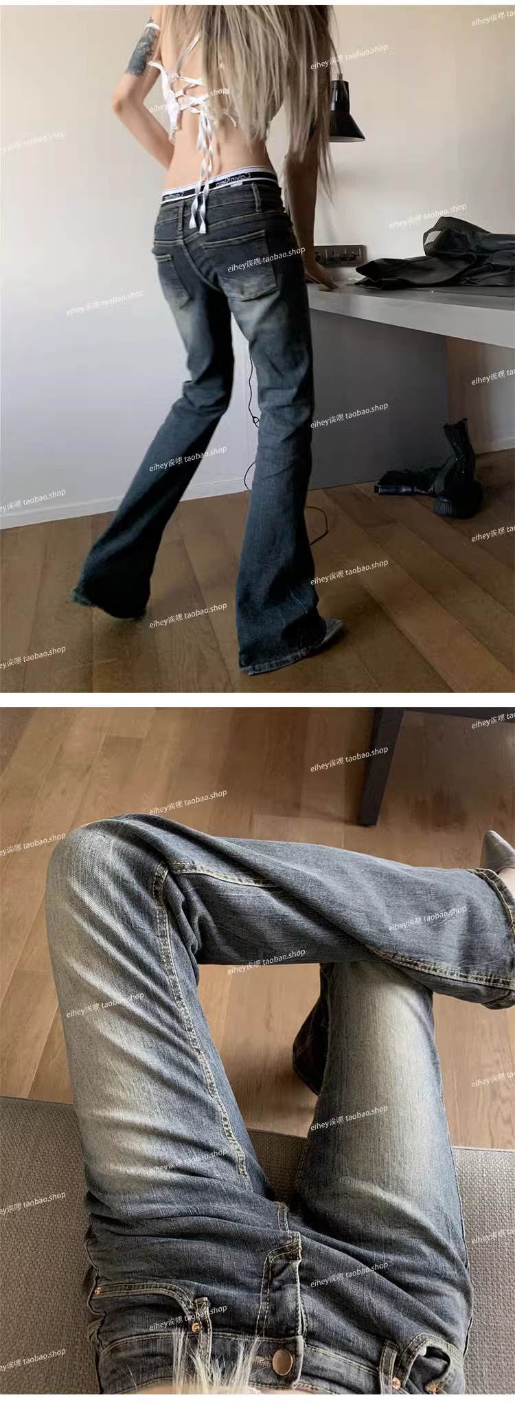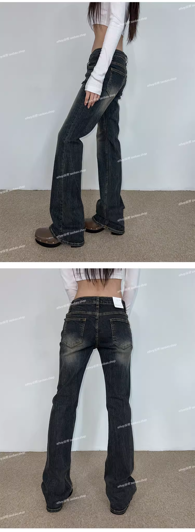 美式復古低腰水洗磨白微喇叭顯瘦百搭牛仔褲拖地長褲