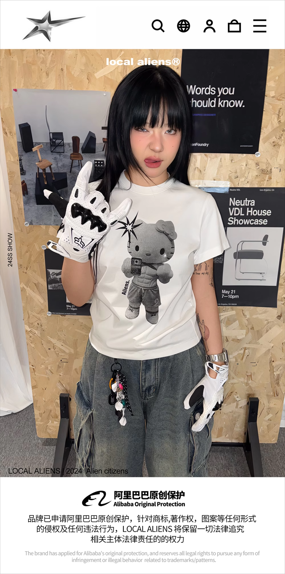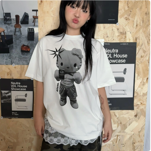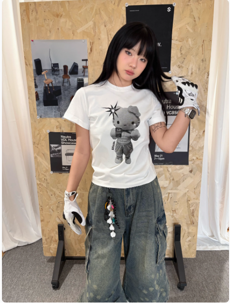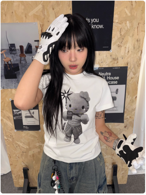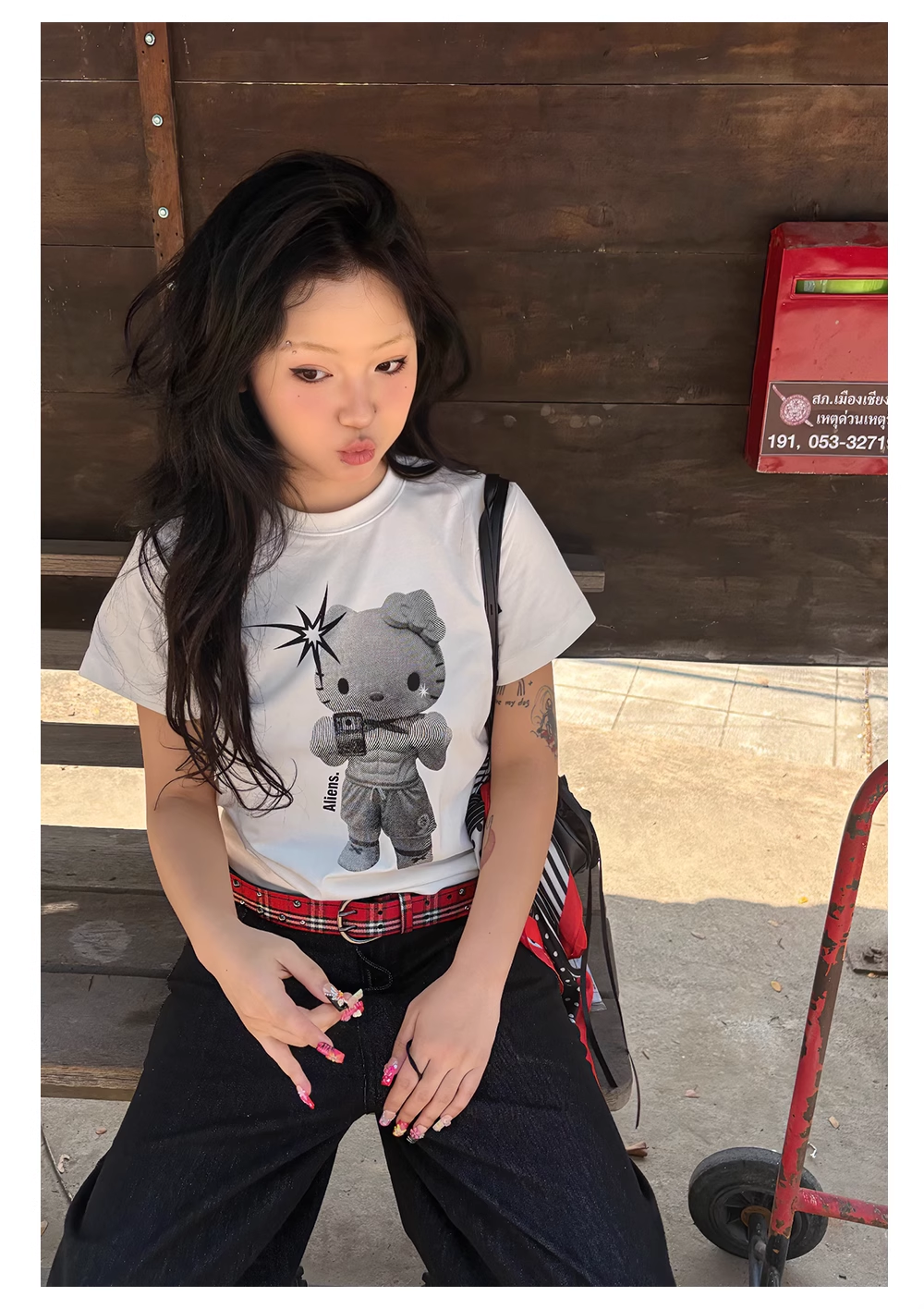 美式復古正肩短袖T恤卡通印花顯瘦百搭半袖