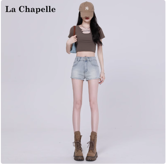 美式復古牛仔短褲女夏季新款高腰緊身a字辣妹熱褲寶藍