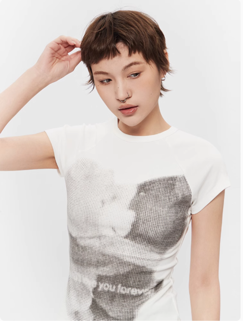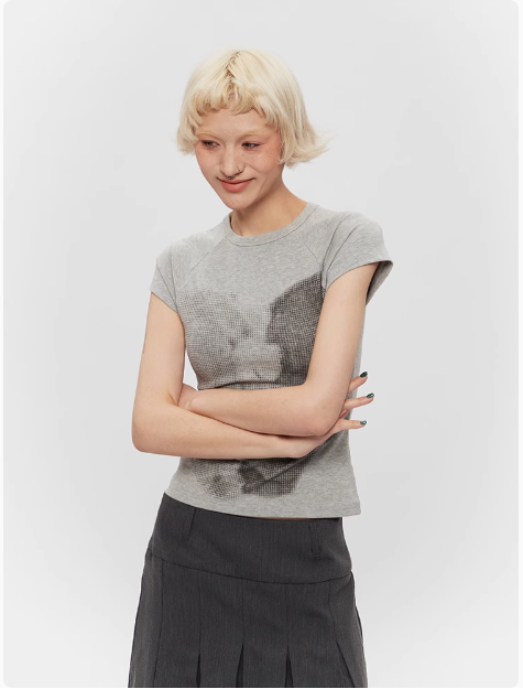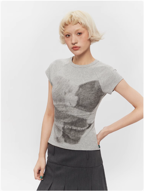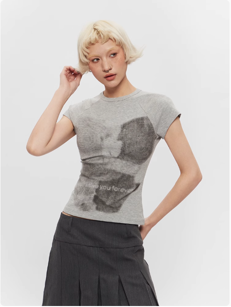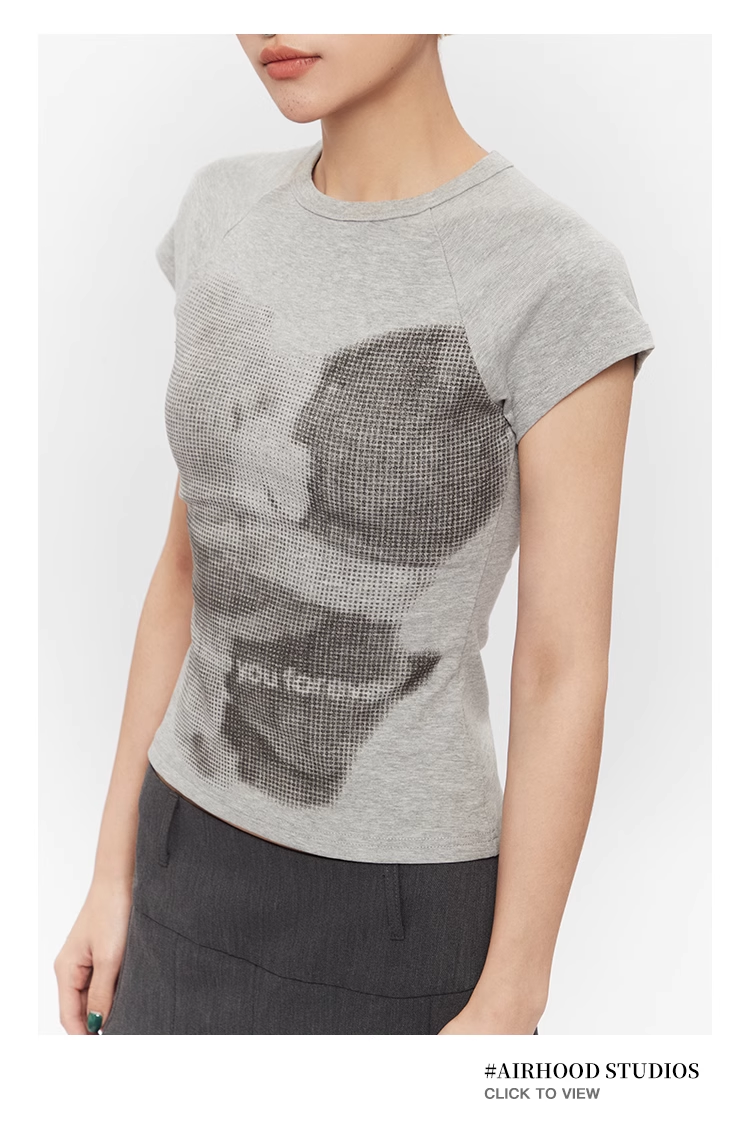 美式潮牌圓領復古短袖T恤女夏季短款辣妹小個子緊身上衣