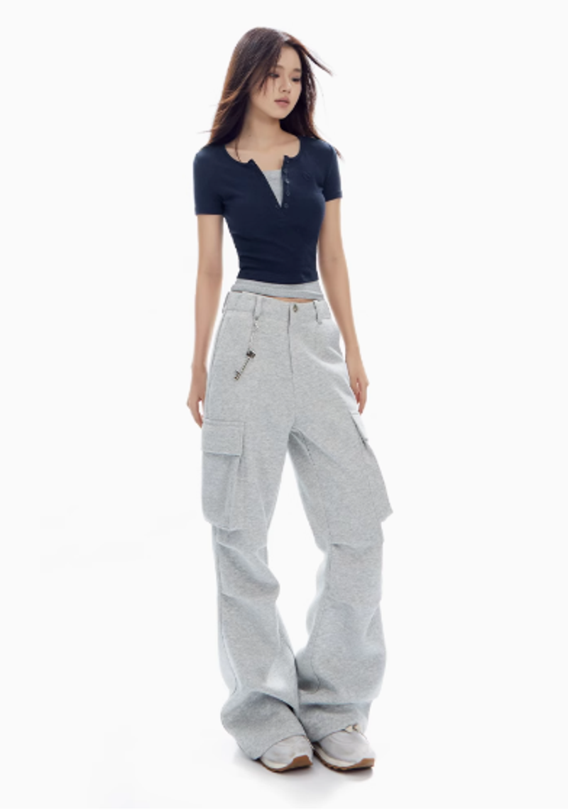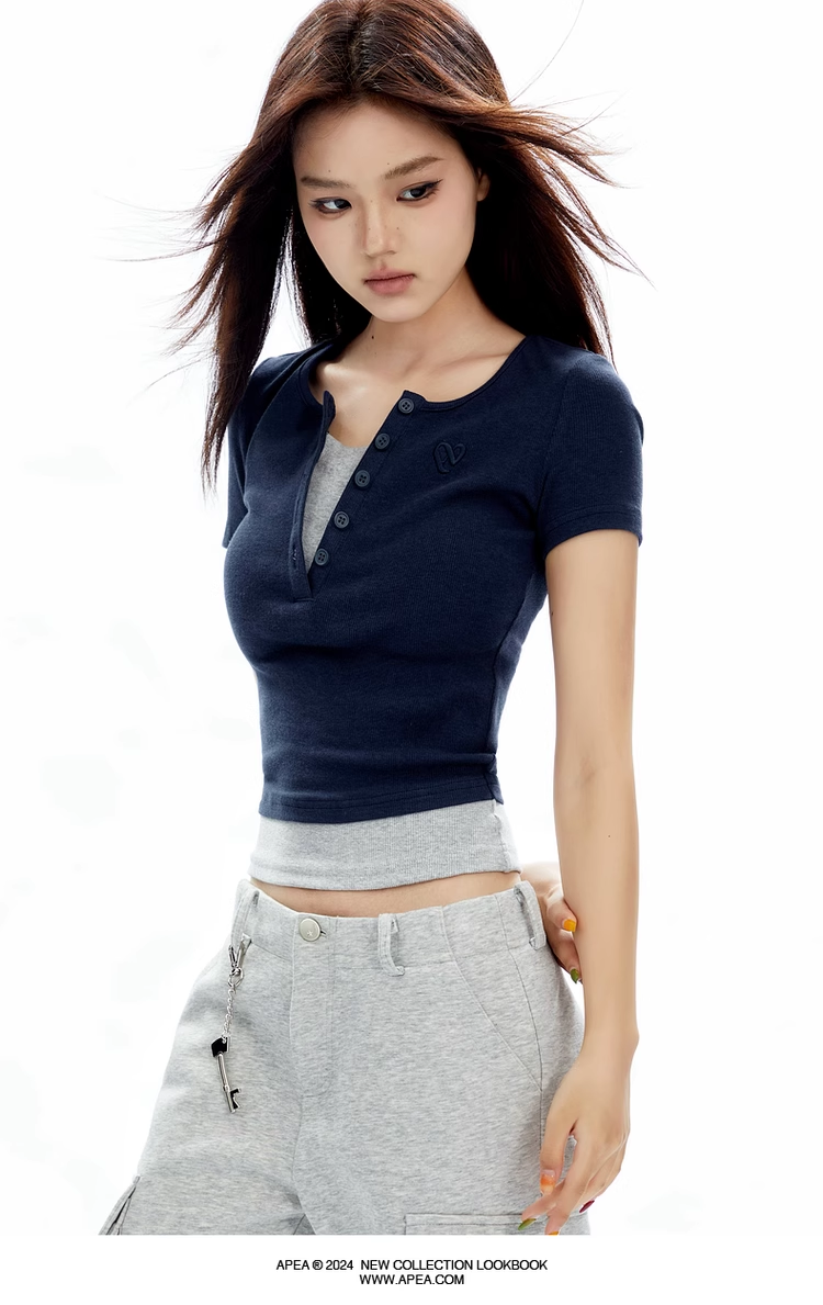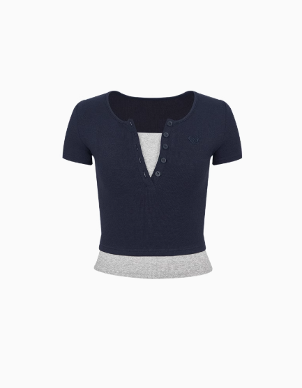 美式疊穿假兩件v領上衣女2025春夏季新款修身顯瘦正肩短袖T恤