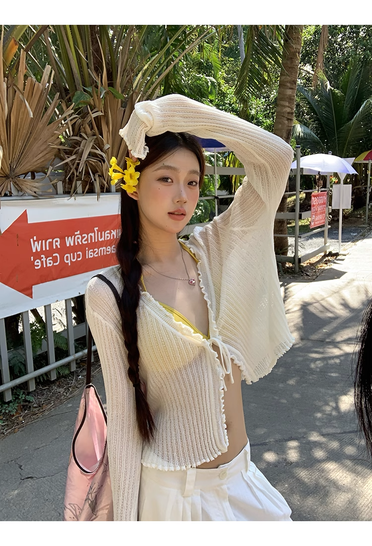 針織開衫女春季穿搭新款上衣chic韓系白色罩衫氣質毛衣外套