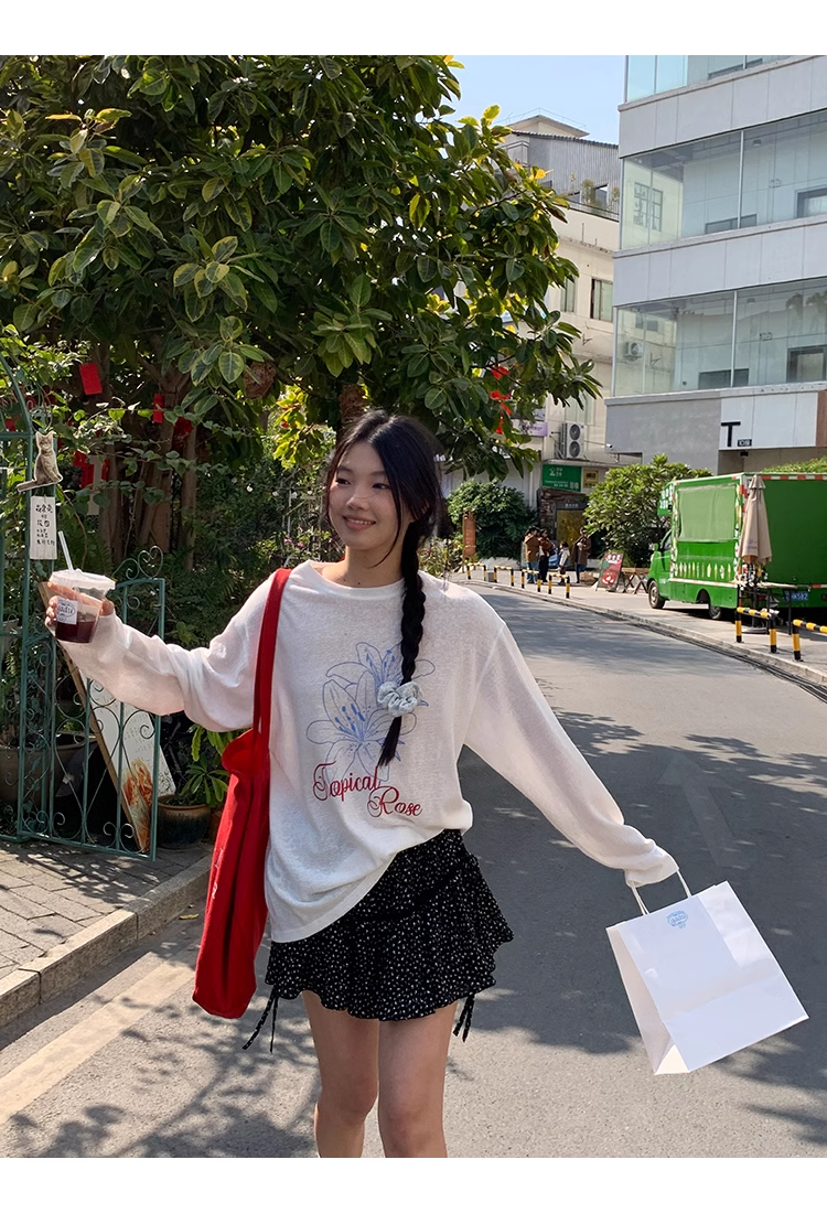 防曬罩衫女夏季新款白正肩長袖t恤寬鬆設計感chic韓繫上衣