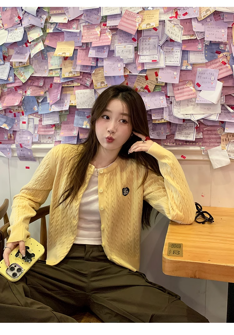 黃色開衫針織外套女冰絲防曬新款春季麻花毛衣外搭上衣