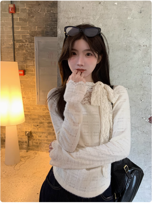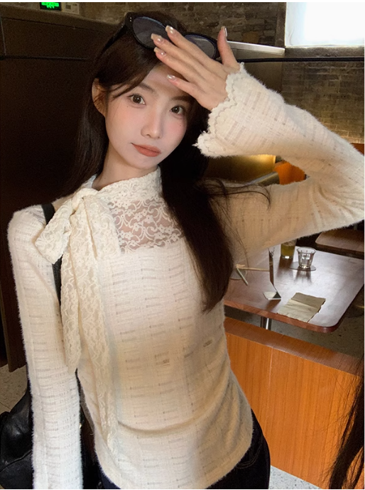 內搭打底衫女春季新款高級感蕾絲修身t恤長袖獨特絕美上衣