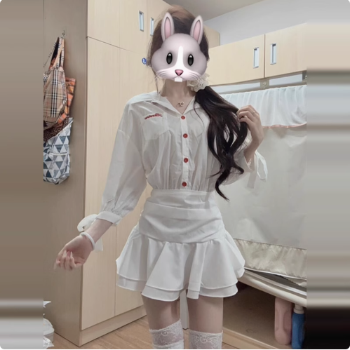 學院風miu系藍色襯衫連衣裙子女春夏季氣質收腰百褶短裙