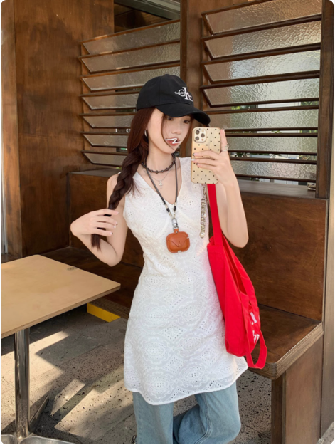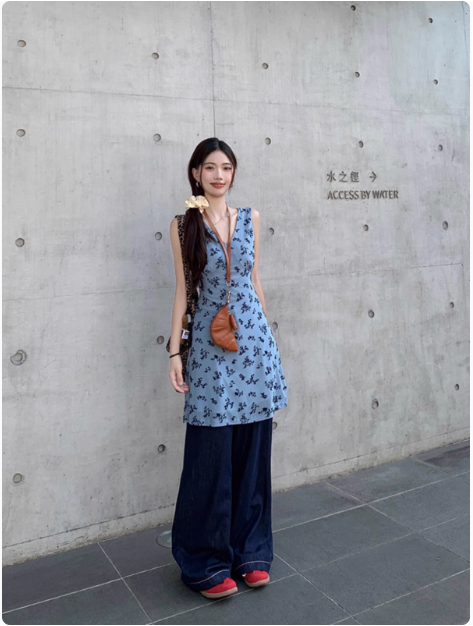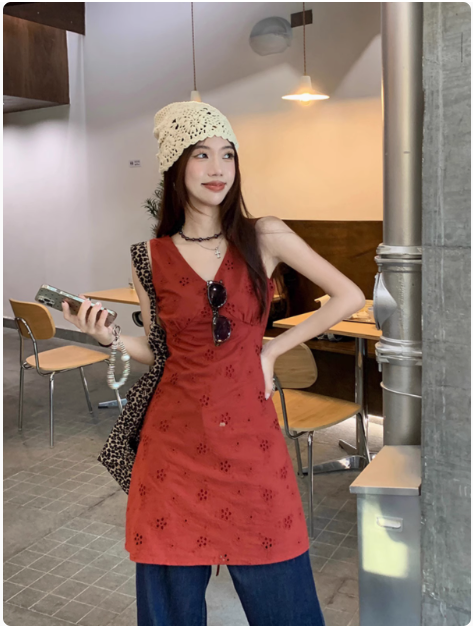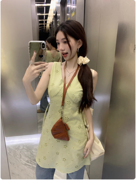 氣質碎花V領背心連衣裙女2025夏季新款韓系收腰顯瘦別緻短裙子潮