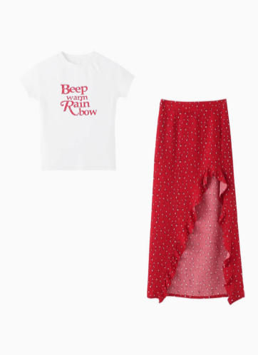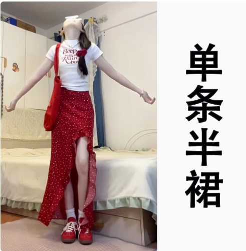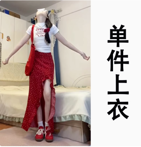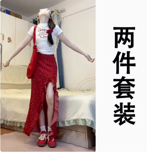 紅色碎花不規則連衣裙子女夏季新款長裙開春氣質穿搭一整套裝