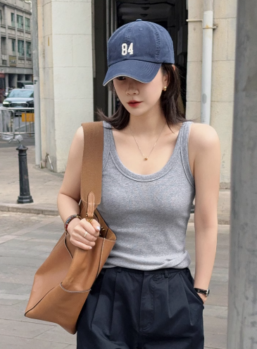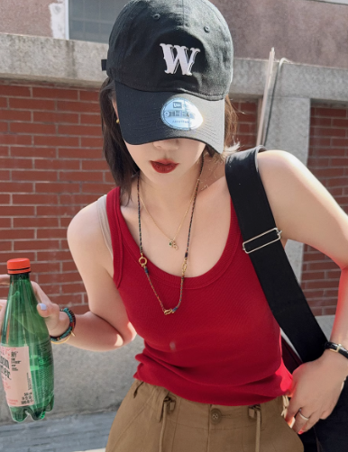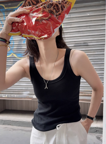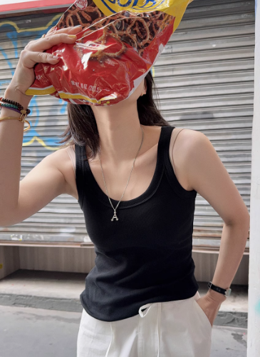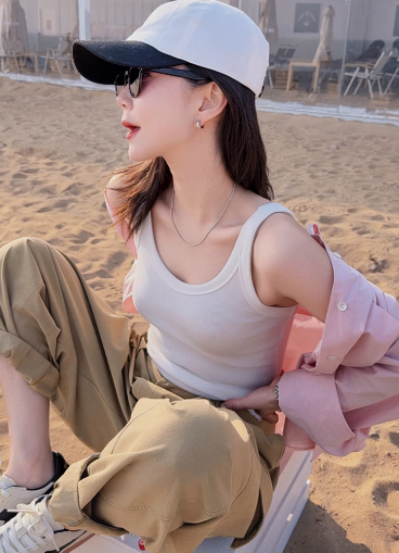 泡泡糖背心 春季新款U領坑條顯瘦內搭吊帶白色上衣女