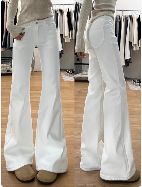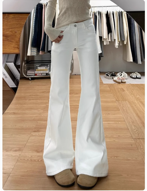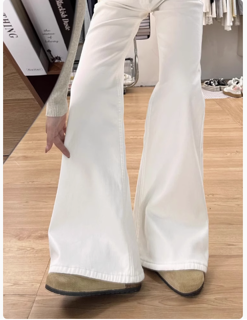 白色微喇牛仔褲女新款大碼胖mm顯瘦高腰寬鬆不貼腿直筒喇叭褲