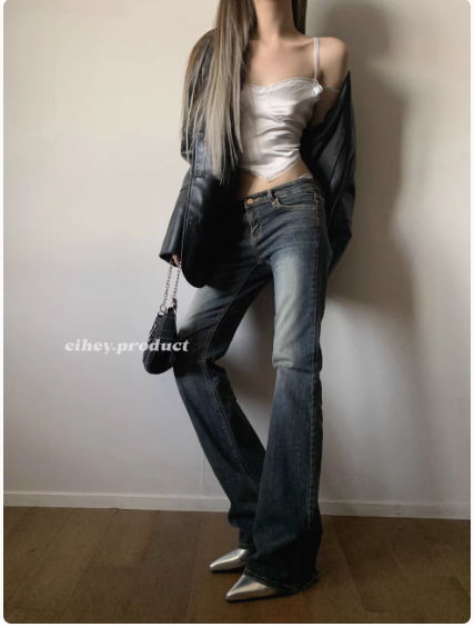美式復古低腰水洗磨白微喇叭顯瘦百搭牛仔褲拖地長褲