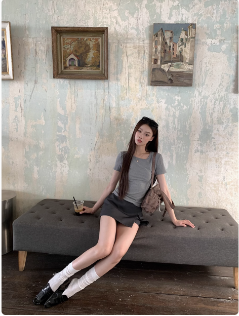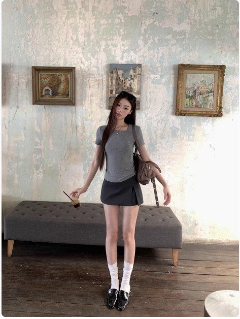 a字半身裙女夏季新款超火包臀灰色裙子小個子西裝短裙